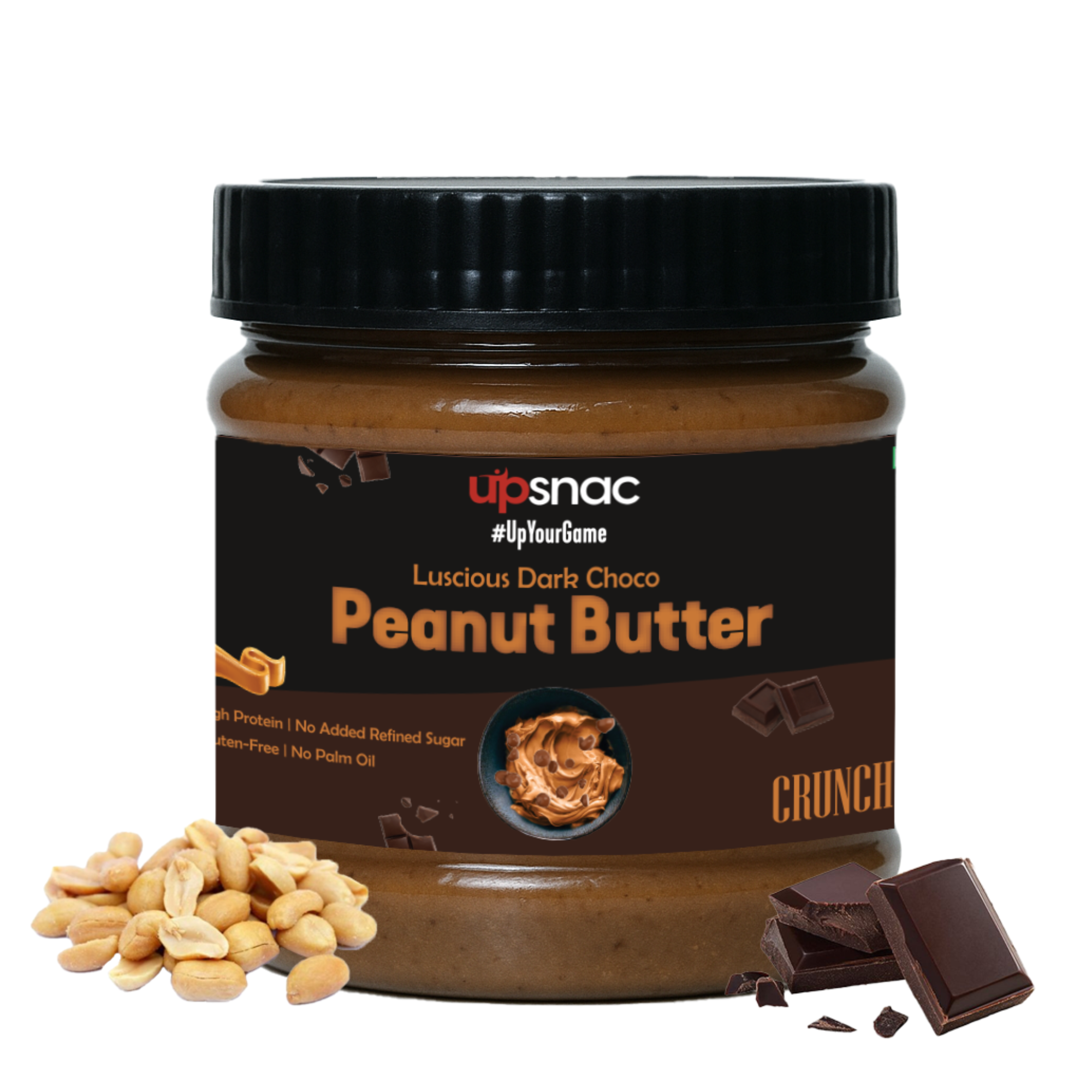 ● Dark Chocolate Crunchy Peanut Butter: Upsnac Luscious Dark Choco Peanut Butter combines rich, intense dark chocolate with crunchy peanuts, offering a delicious and satisfying taste.